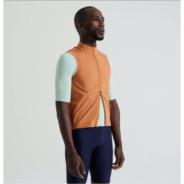 - Tela ligera y una construcción mínima permiten que el chaleco se guarde fácilmente.